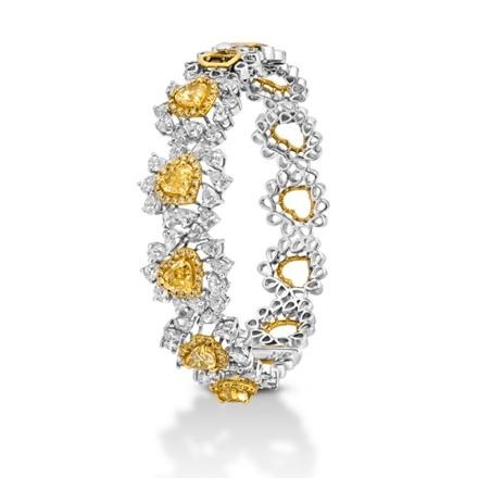 Main the public sale and featured on the duvet is lot no. 25, A Rare 18k White Gold Diamond Bracelet. Designed with floral and coronary heart motifs, it showcases vivid fancy yellow diamonds, complemented by spherical sensible and pear-cut white diamonds.